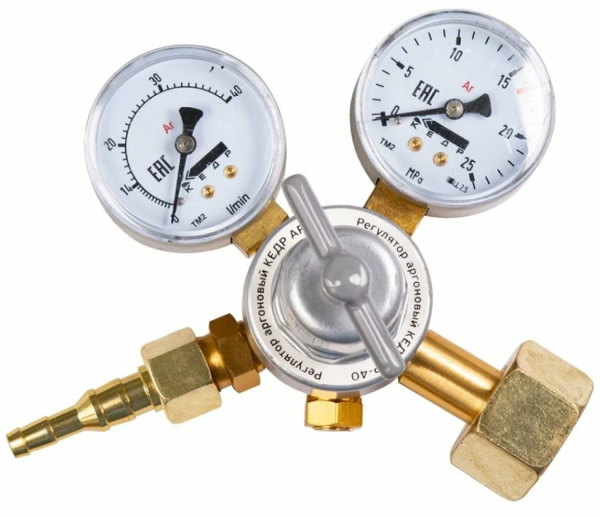 Argon regulator AR-40 Cedr 8024343 is designed to reduce the pressure of the gas coming from the cylinder and automatically maintain a constant set working pressure when welding in the environment of protective gases. Produces fine adjustment of working pressure.