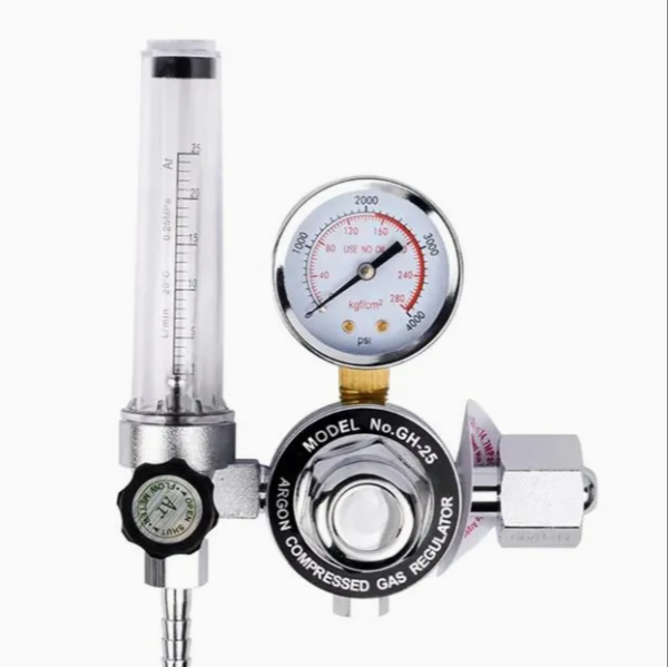 Gas pressure reducers for argon, carbon dioxide, and non heating (MIG/MAG welding). Argon pressure reducers are essential for regulating, maintaining, and generating the pressure required by cylinders during welding. Two pressure gauges are responsible for controlling the pressure at the inlet and working pressure chamber. This pressure gauge is installed on the cylinder for subsequent supply of gas to the welding torch. It is used together with MIG/MAG welding machines.