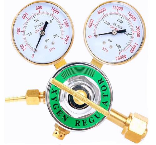 Oxygen regulator, welding pressure gauge, all brass heavy-duty fuel tank, cutting torch kit, outlet 0-200PSI, inlet 0-4000PSI, CGA 540 (oxygen regulator)