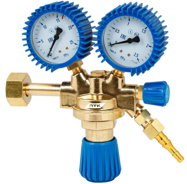 The oxygen reducer BKO-50-KR-I is designed to reduce the pressure of the gas coming from the cylinder and automatically maintain a constant set working pressure during gas flame treatment. Produces fine adjustment of working pressure. The work of the safety valve occurs at a pressure of 1.6 MPa.